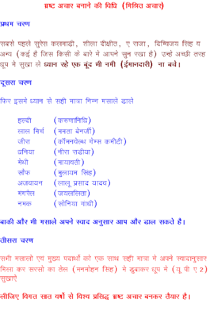भ्रष्ट+अचार= भ्रष्टाचार वाह-वाह...