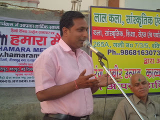 नई दिल्लीःलाल कला,सांस्कृतिक एवं सामाजिक चेतना मंच(रजि.) द्वारा सामाजिक भाईचारे के पावन पर्व होली के शुभ अवसर पर रंग अबीर उत्सव-2013(काव्य गोष्टी एवं सांस्कृतिक कार्यक्रम) का आयोजन अल्फा शैक्षणिक संस्थान, मीठापुर के प्रांगण में वरिष्ठ सामाजसेवी मास्टर डंबर सिंह की अध्यक्षता में संपन्न हुआ। इस कार्यक्रम का शुभारंभ लाल बिहारी लाल के सरस्वती वंदना-ऐसा माँ वर दे/विद्या के संग-संग/सुख समृद्धि से सबको भर दे, से हुआ। कार्यक्रम के अतिथि कामरेड जगदीश चंद्र शर्मा, मीठापुर के पूर्व निगम पार्षद महेश आवाना, समाजवादी आत्मा राम पांचाल तथा गौरव बिन्दल थे। इस कार्यक्रम का संयोजन दिल्ली रत्न श्री लाल बिहारी लाल का था तथा संचालन वरिष्ठ साहित्यकार डा. ए. कीर्तिवर्धन ने किया। इस अवसर पर कवियों एवं बच्चों को संस्था द्वारा काव्यसेवी सम्मान अतिथियों द्वारा एवं अतिथियों को डा. आर कान्त एवं डा.के.के. तिवारी द्वारा समाजसेवी सम्मान से सम्मानित किया गया। सम्मान स्वरुप अंग वस्त्र एवं सम्मान-पत्र प्रदान किया गया।